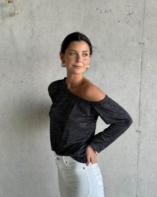 Juicy Asymmetrical Neckline Long-Sleeve Shimmery Top