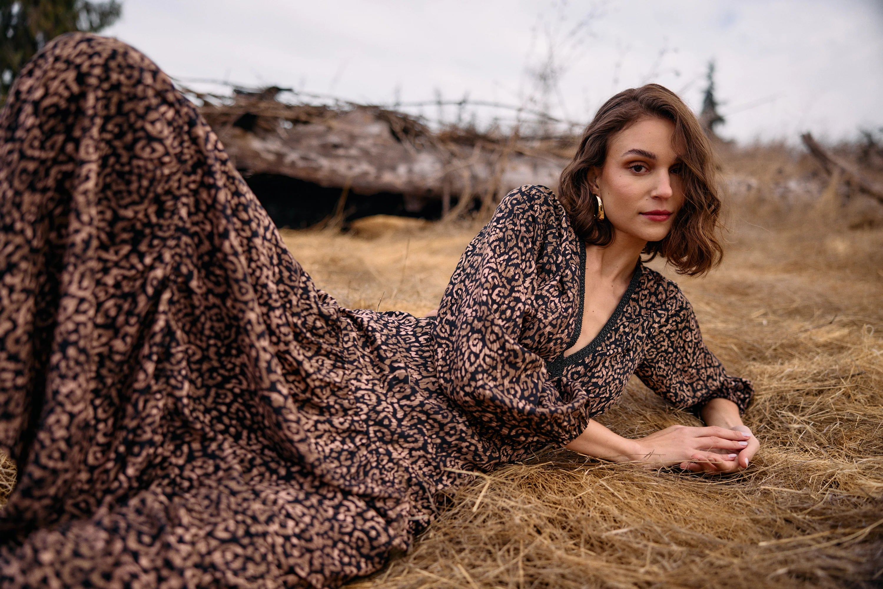 Kuta Geopard V-Neck Long Sleeves Viscose Dress