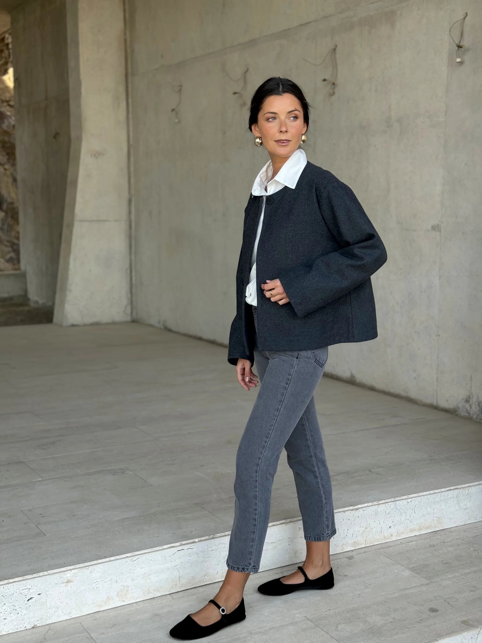 Gray Wool Lady Jacket with Gold Buttons