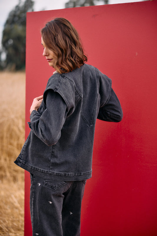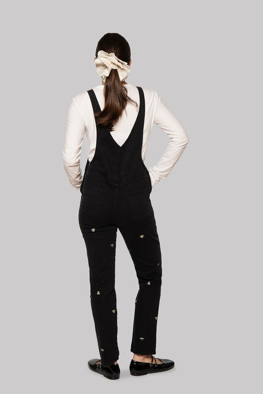 Gretek Ash Denim Overalls with Golden Insect Embroidery