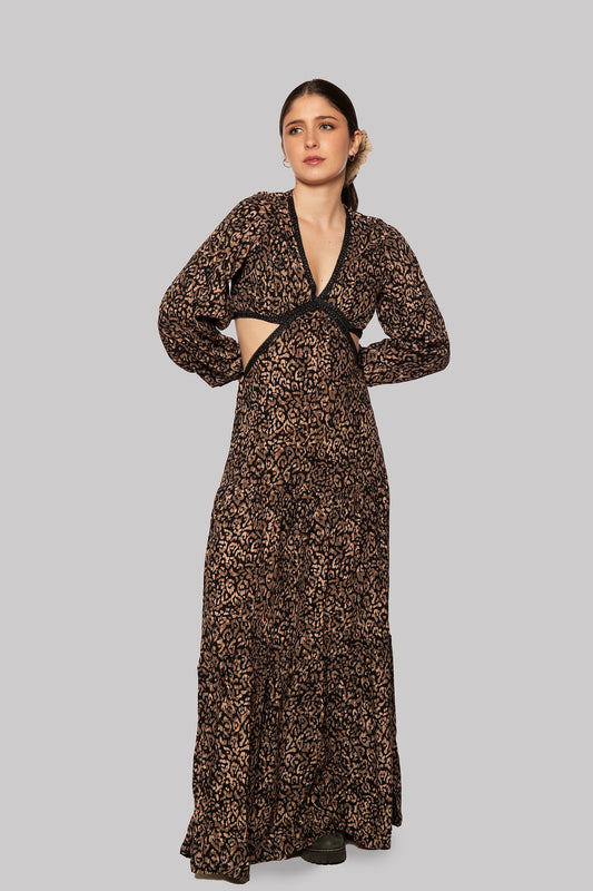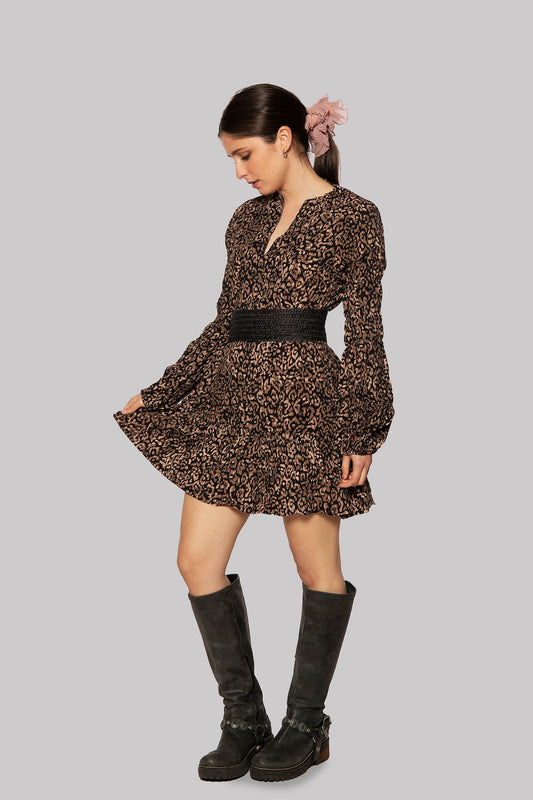 Kuta Geopard V-Neck Long Sleeves Viscose Dress