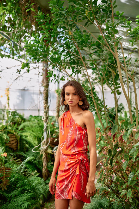 Gamboa Wila Red Pattern One-shoulder Viscose Dress
