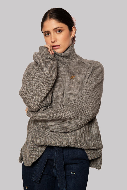 Tente Gray Long Sleeve Alpaca and Acrylic Mockneck Sweater
