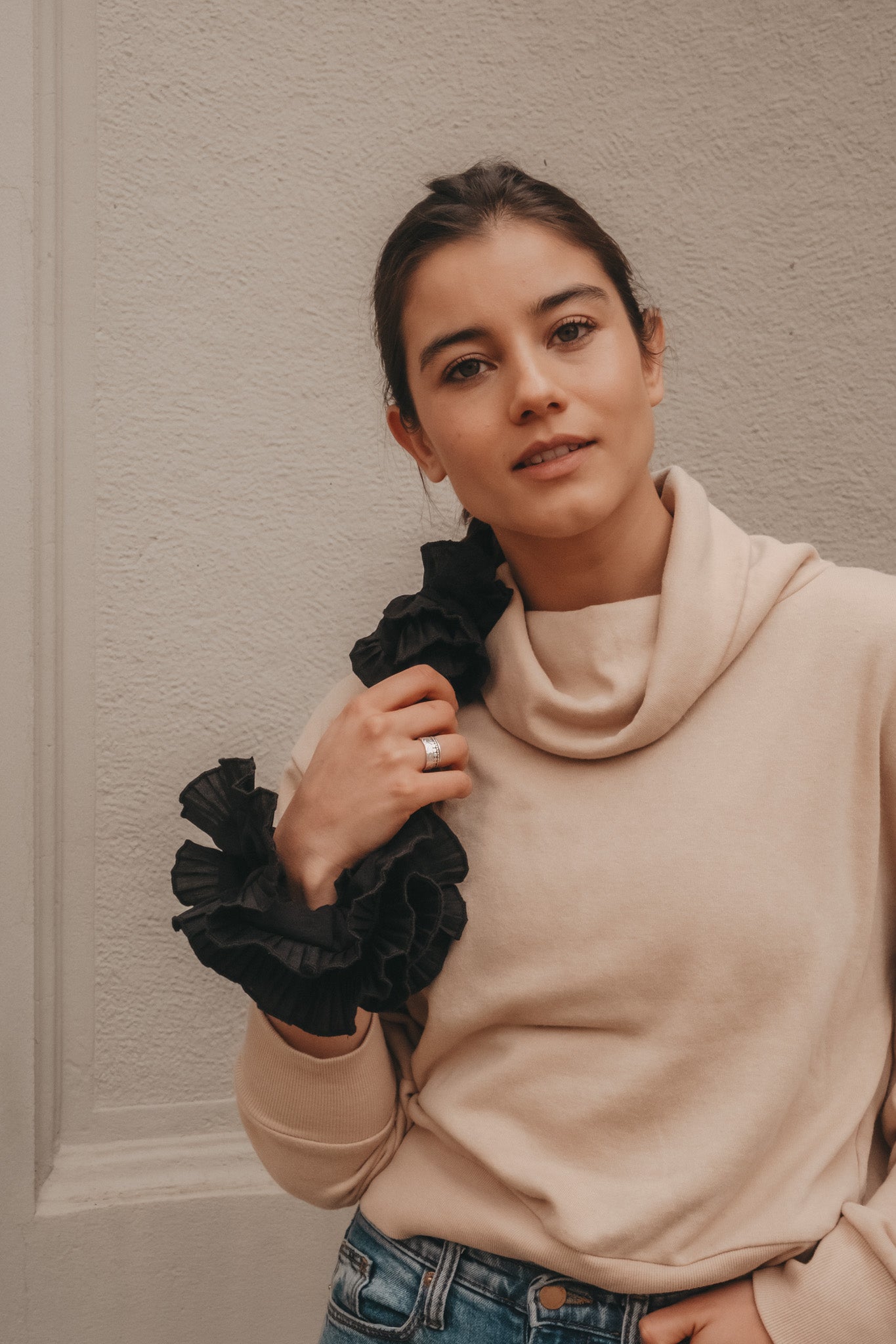 "Bambas" are unique, large scrunchies that are comfortable, easy to use, and stylish for tying up your hair. You can use them in a ponytail, bun, braid, or however you like! They are handmade by female artisans from different regions of Chile, promoting traditional crafts, local development, and fair trade. The design of each scrunchie is original and limited edition. They make the perfect gift and accessory!