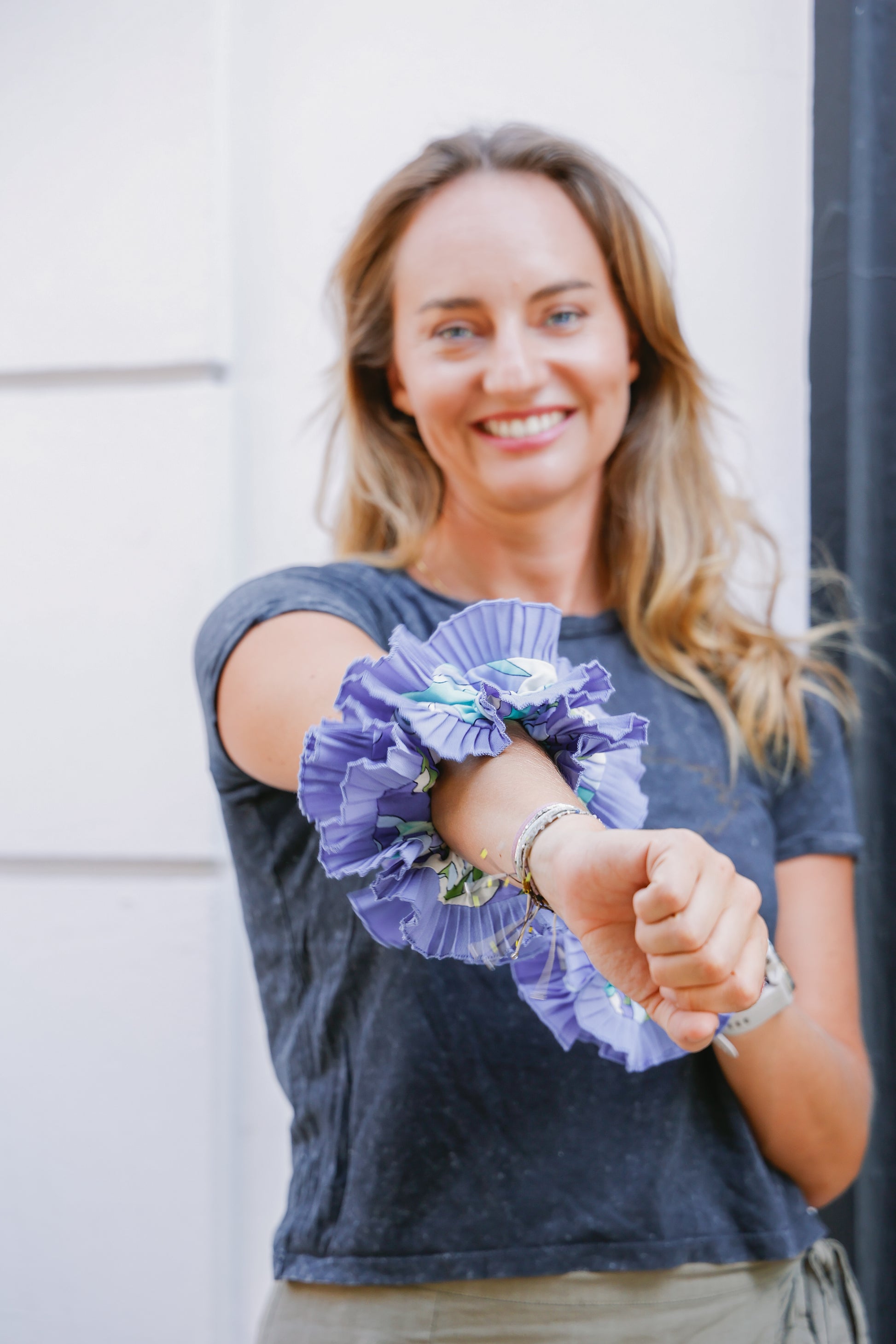 The "Bambas" are unique, large scrunchies that are comfortable, easy to use, and stylish for tying up your hair. You can use them in a ponytail, bun, braid, or however you like! They are handmade by female artisans from different regions of Chile, promoting traditional crafts, local development, and fair trade. The design of each scrunchie is original and limited edition. They make the perfect gift and accessory!