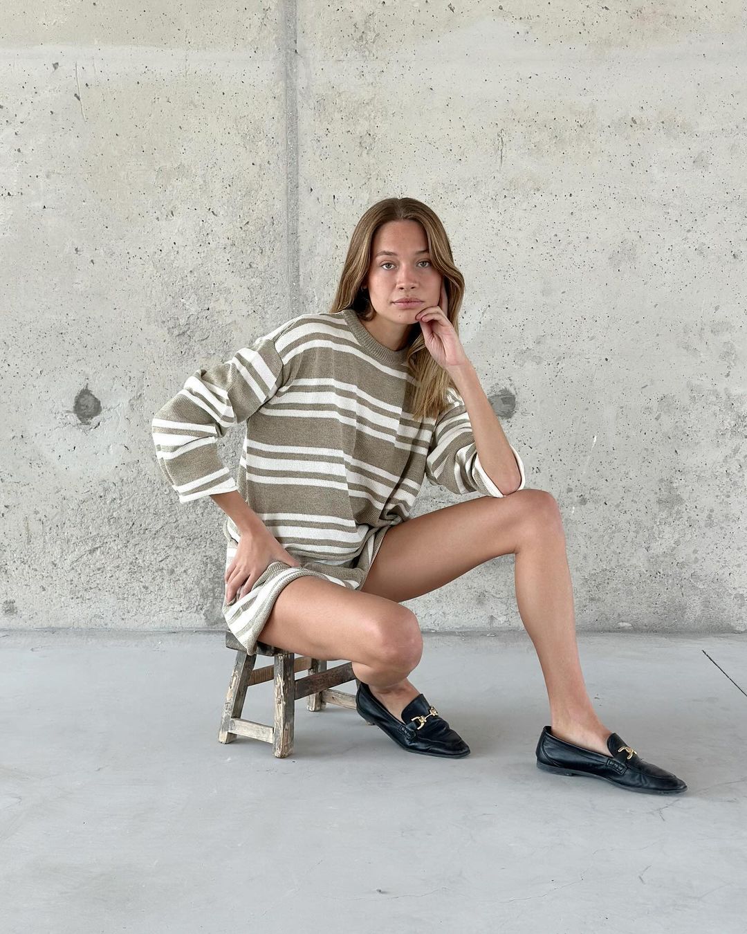 Embrace a palette of beige with white stripes, creating a look that’s both classic and contemporary.