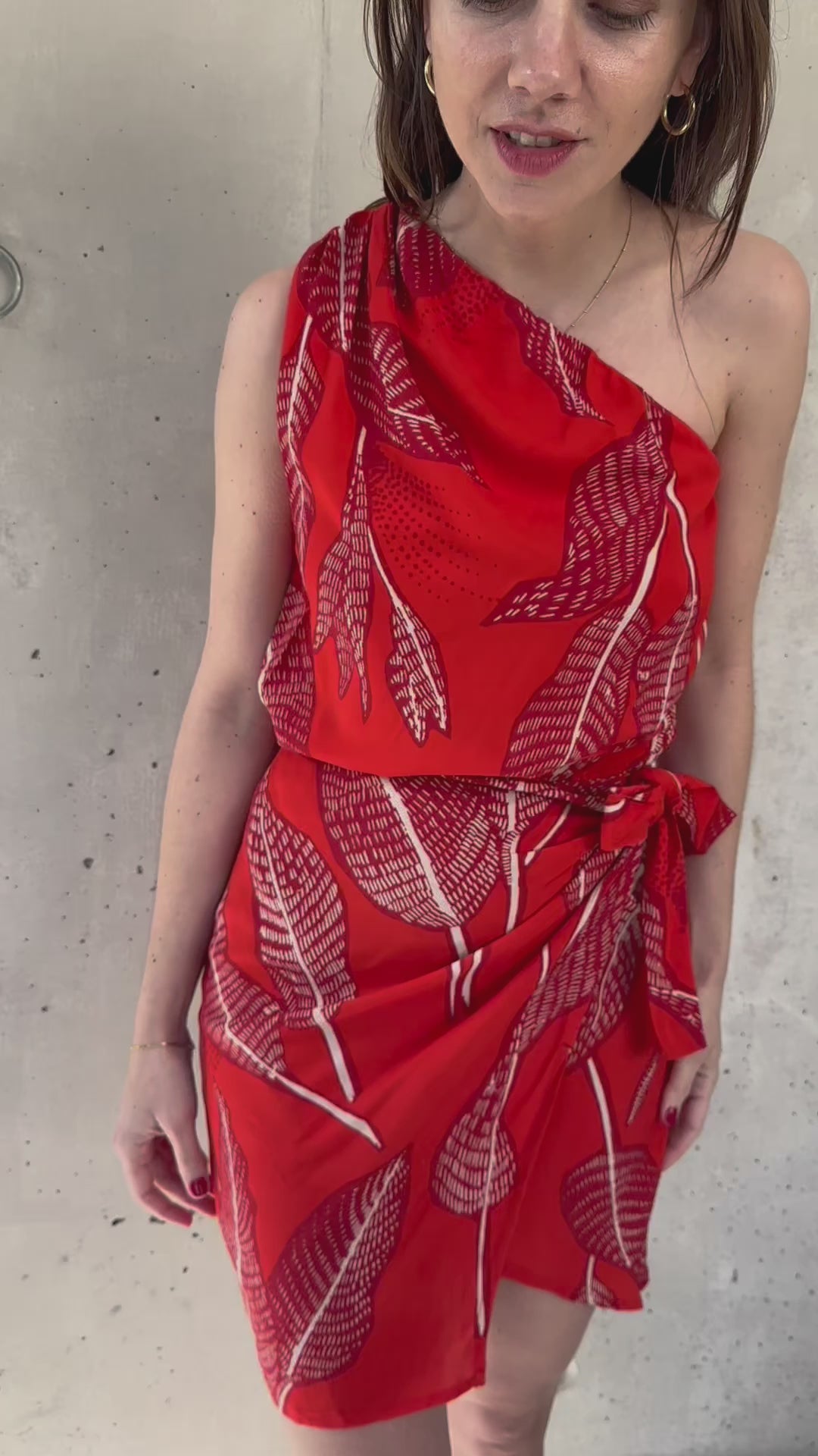 Gamboa Wila Red Pattern One-shoulder Viscose Dress