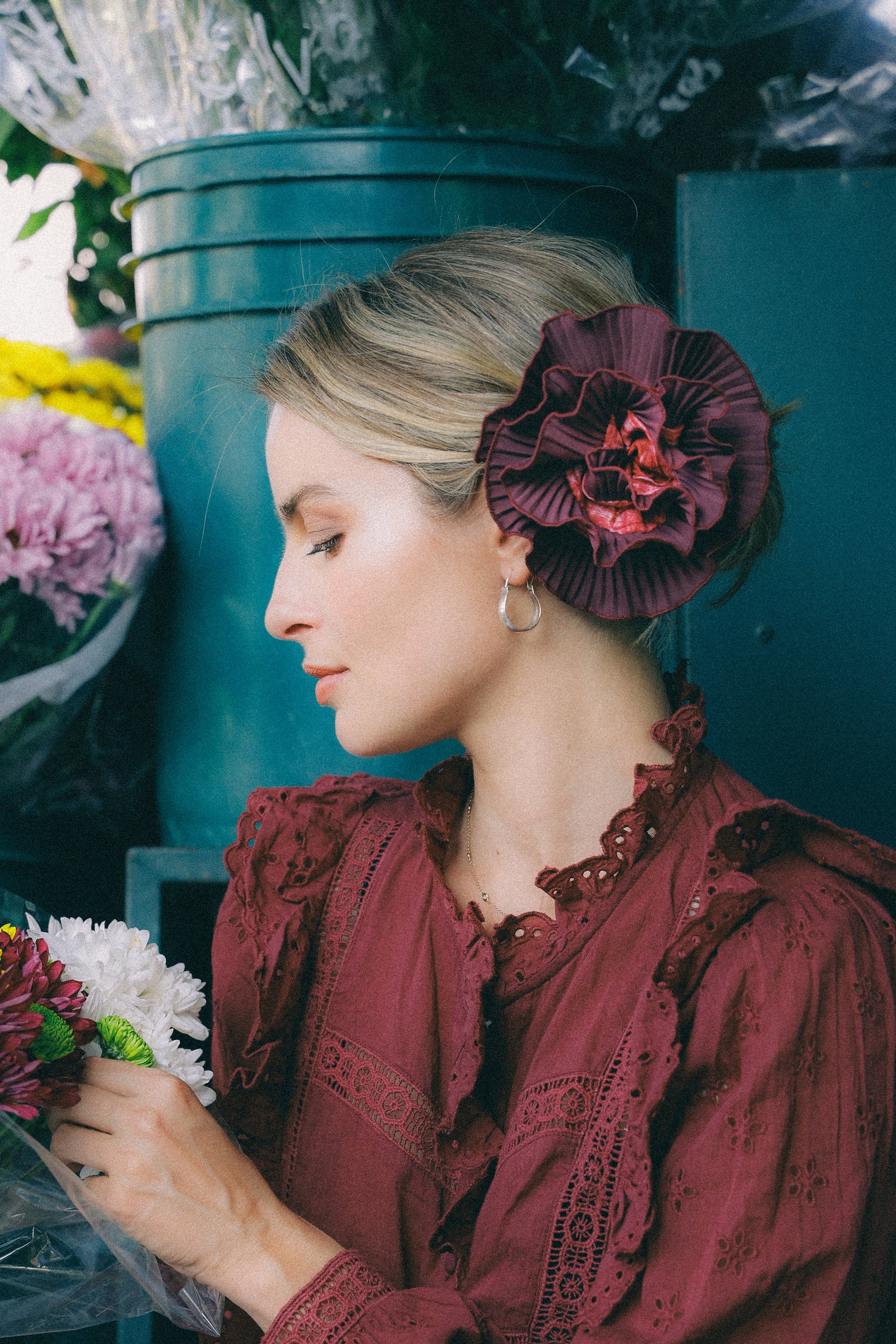 Bordeaux Bamba Flower Hair Barrette