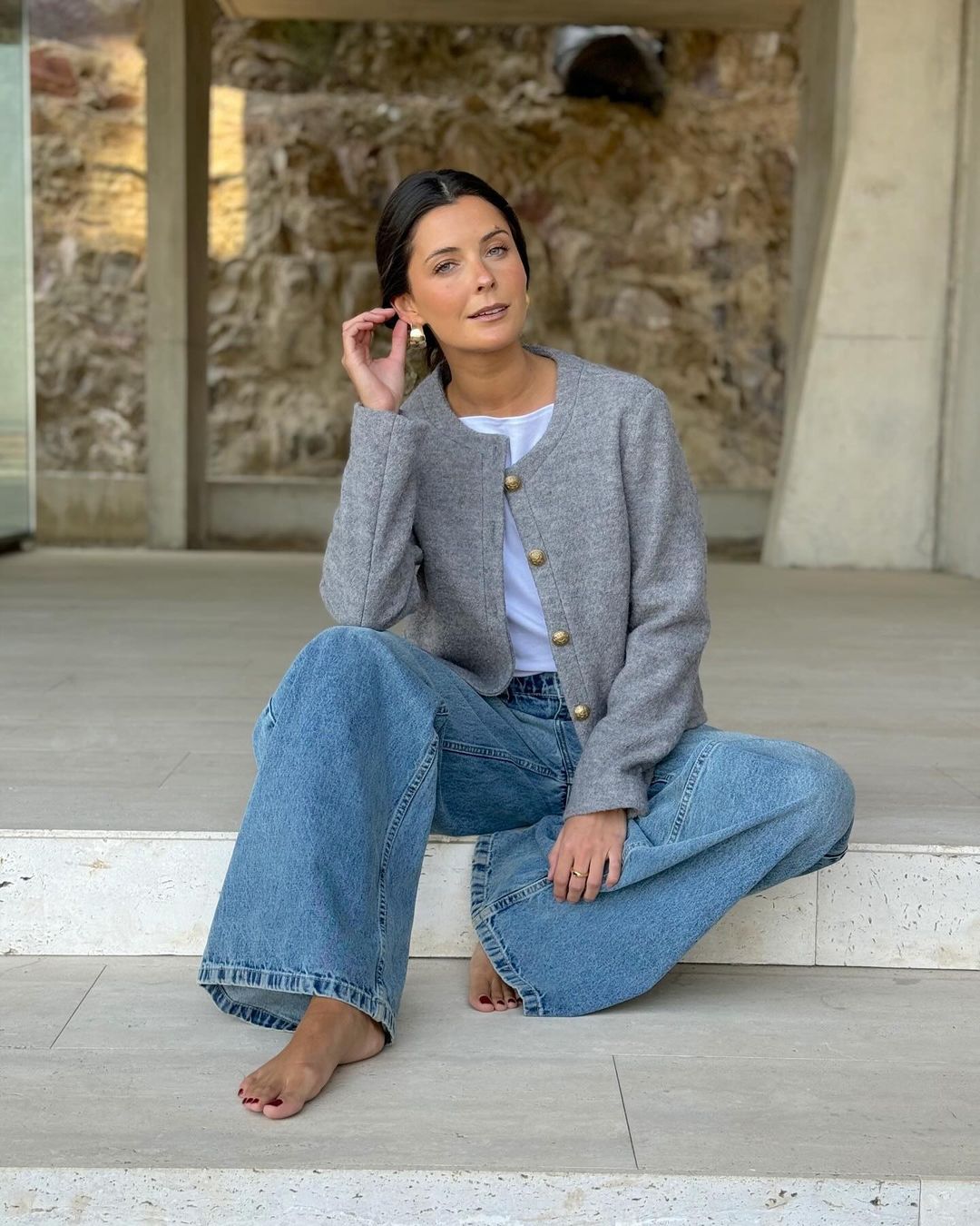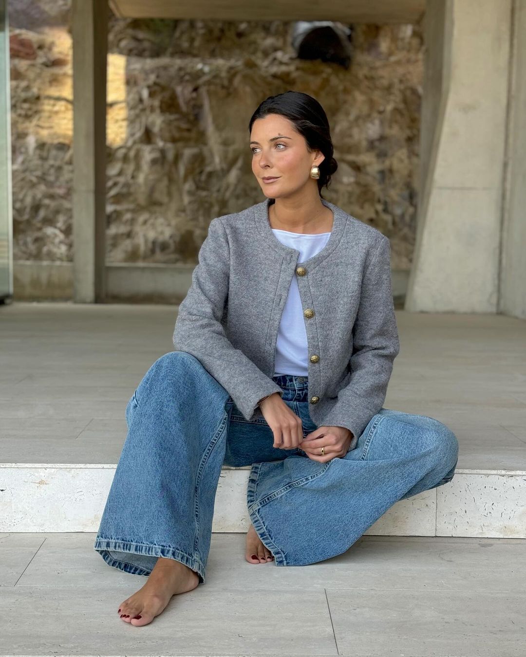 Gray Wool Lady Jacket with Gold Buttons